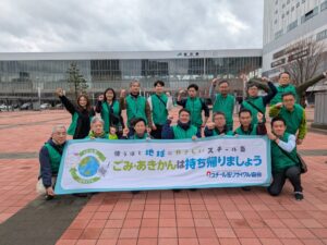 2025年度 散乱防止・美化キャンペーンを北海道旭川市で実施しました 2025.04.22 今年1回目(累計516回)の美化キャンペーンを、4月20日(日)北海道旭川市で実施しました。旭川市が主催する「ゴミのポイ捨て禁止運動春季街頭啓発及びごみ拾い」に協力し、会員各社及び協力団体より総勢17名で参加しました。当日早朝、あいにくの雨天予報を受けて清掃活動は中止となりましたが、旭川駅北広場周辺で買い物客や旅行客など通行される方々に協会の小冊子とノベルティーを配布し、ポイ捨て禁止やリサイクル推進への協力を呼びかけました。 2025年度, 散乱防止・美化キャンペーン, 未分類, 活動報告