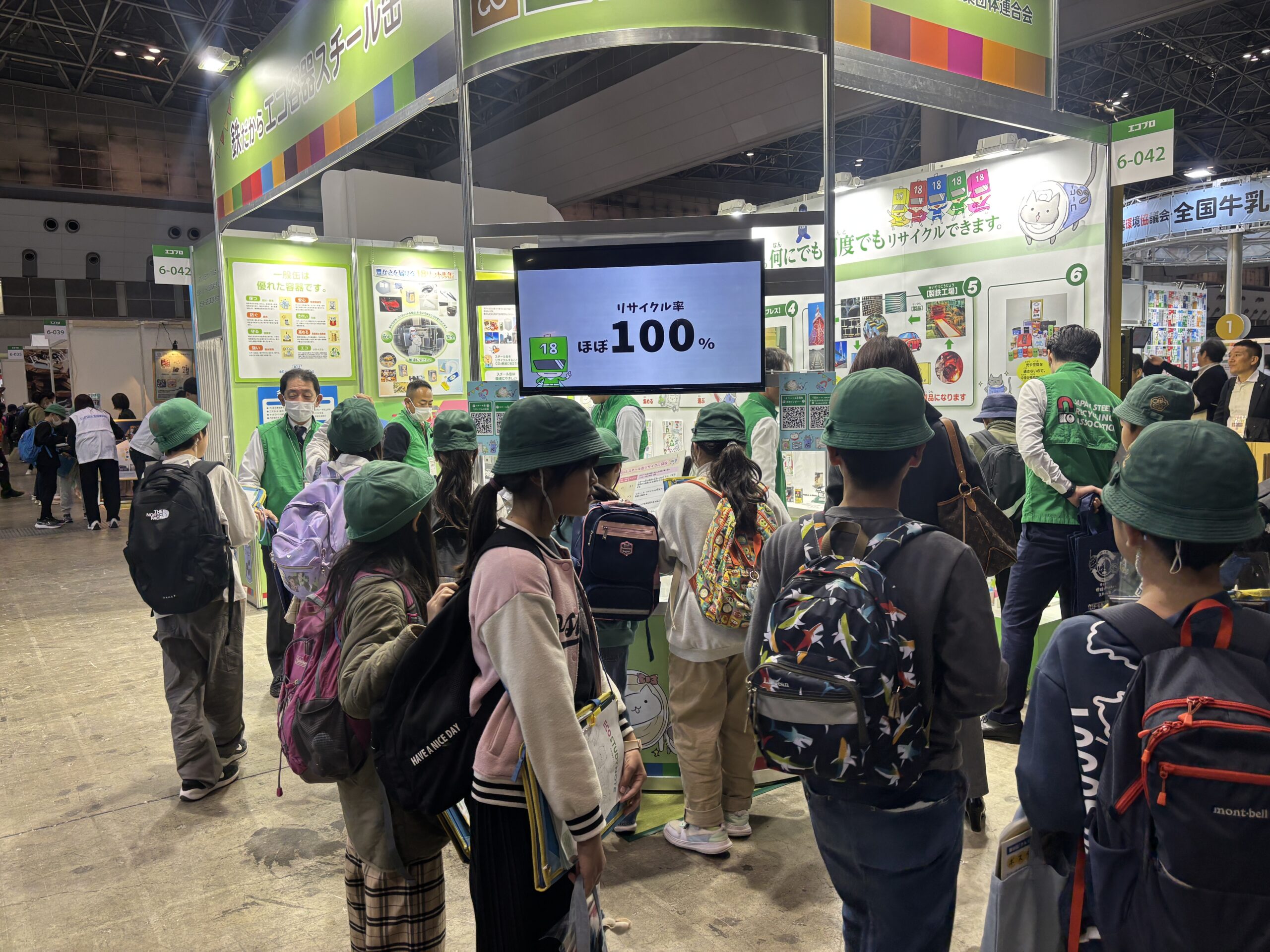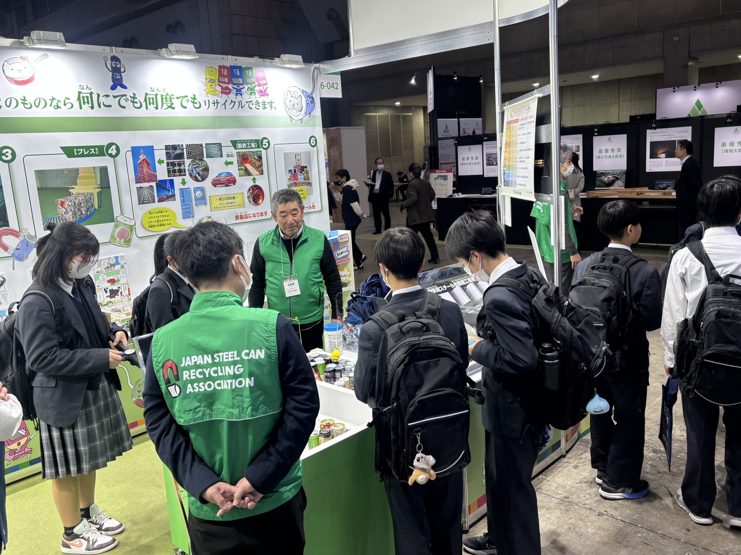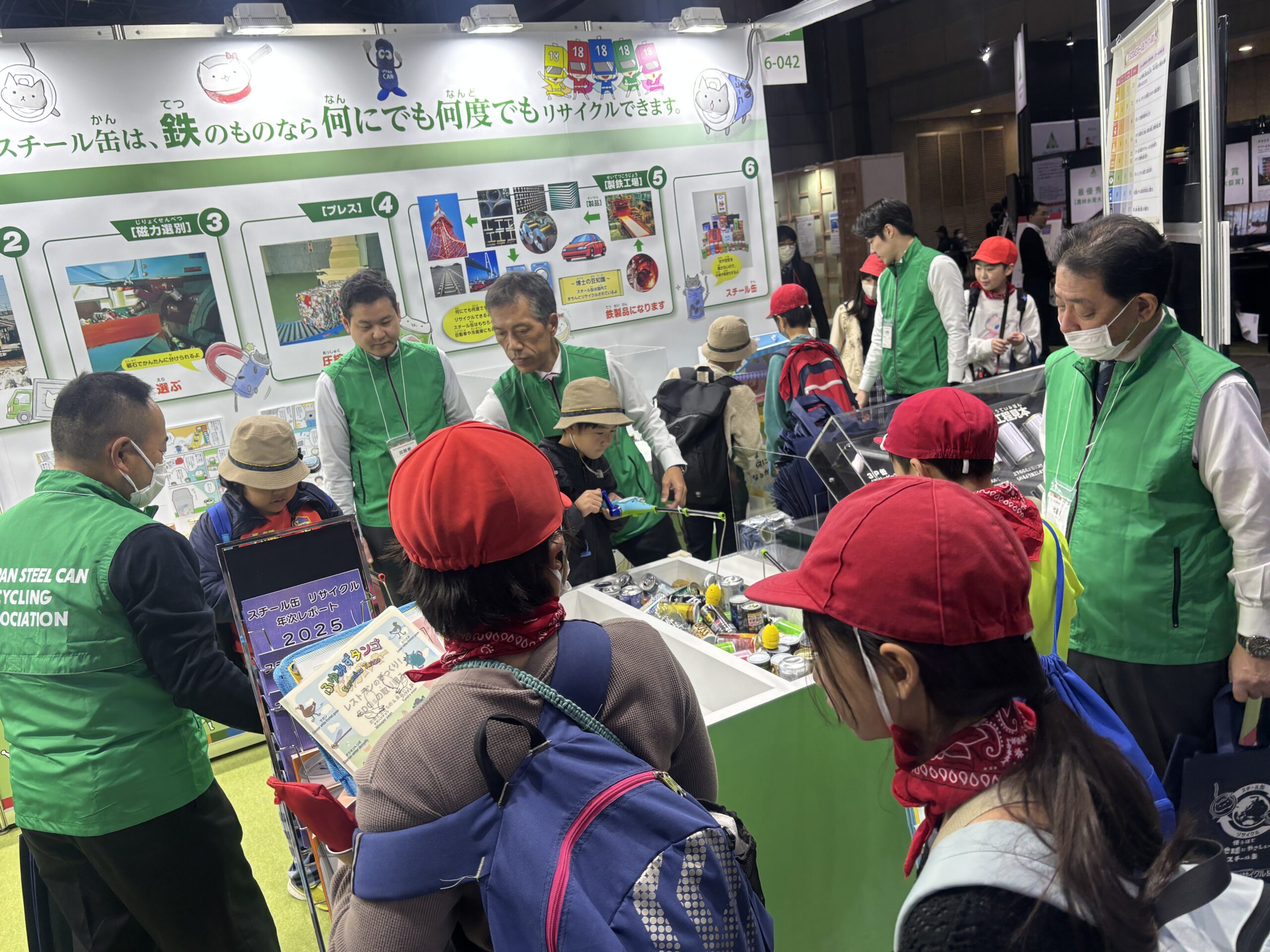 2025年度 エコプロ2025に出展しました 2025.12.24 12月10日~12日に東京ビッグサイトで開催された「エコプロ2025 (第27回)」に全国十八リットル缶工業組合連合会、全日本一般缶工業団体連合会と共同出展し、小中学生を中心に当ブースに来場された2,000名強の方々にスチール缶のリサイクルについて説明しました。 ブース内では、スチール缶は鉄でできているので磁力を使って選別できることや、リサイクルすることで鉄製品なら何にでも生まれ変われることを、缶釣りやスロープトイを使って遊びながら学んでもらいました。 2025年度, 出展, 年度別, 活動報告
